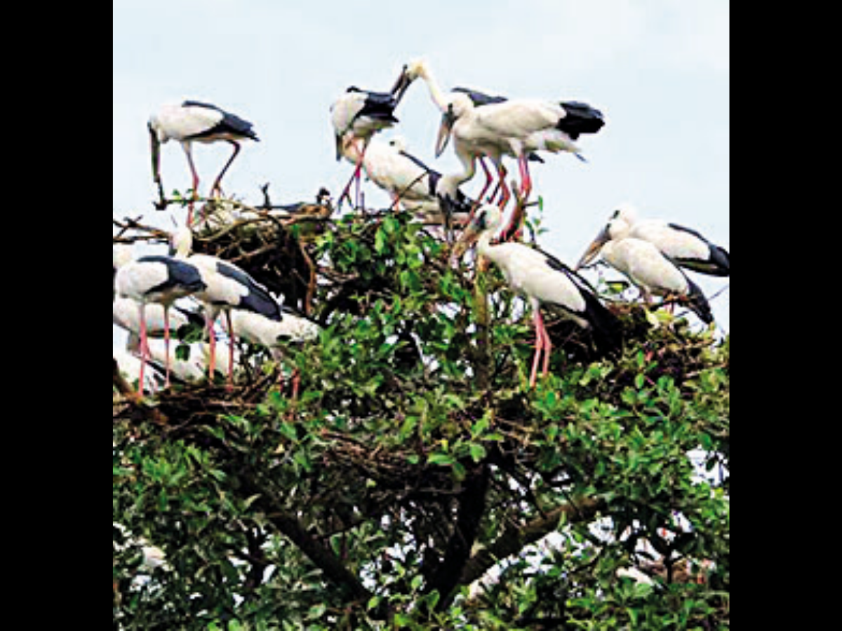 The most important nesting birds are the open-billed stork, little cormorant, median egret, large egret, little egret, purple heron, grey heron, darter, white ibis and cattle egret.