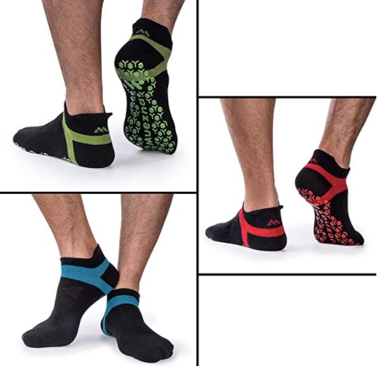 Wear these nonslip yoga socks to maintain a good grip on the mat through every pose. The soft and comfortable socks are made from breathable cotton and have nonslip silicone grips along the soles that keep feet securely in place while also keeping them warm.