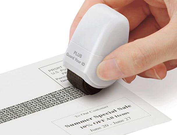 Protect personal information on paperwork with this security stamp roller. You can use the compact roller to block addresses, account numbers, and other sensitive information with an encrypted pattern. The oil-based ink penetrates non-glossy papers, and each cartridge lasts for up to 1,000 uses. The roller comes in six colors and refill cartridges are also available.