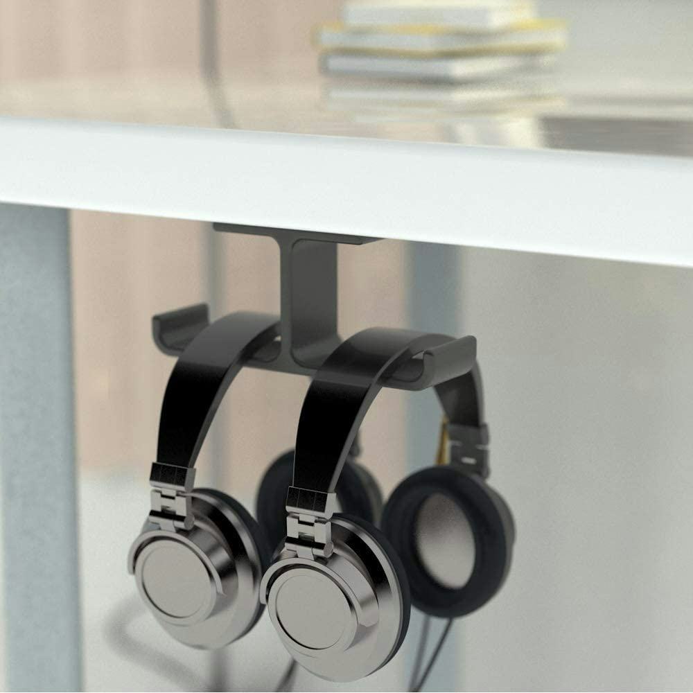 With this aluminum under-desk headset holder, your headphones will always have a storage spot and your desk will stay clutter-free. The lightweight, durable headset holder installs easily with the included two-sided tape or screws, and it holds up to two headsets at a time. Choose from styles with and without cable organizers.