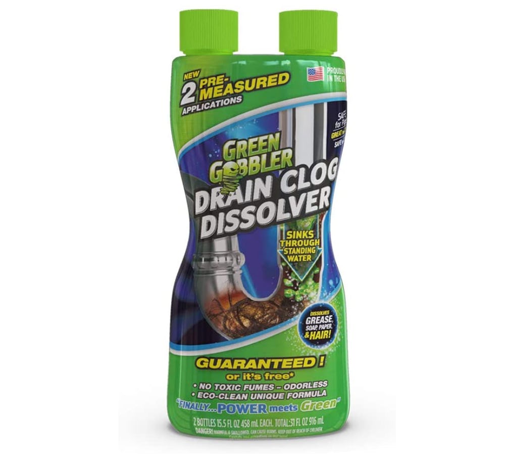 This powerful drain clog dissolver clears backups in minutes, and each bottle comes with two pre-measured applications, so all you have to do is open and pour. The formula contains no sodium hydroxide or bleach, and it dissolves hair, soap scum, grease, and more. Plus, it's safe to use in sinks, tubs, toilets, and septic systems.