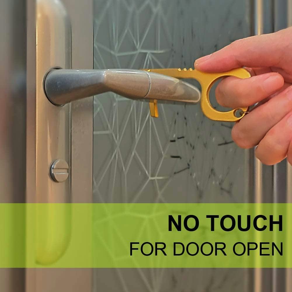 Avoid touching shared surfaces with this no-contact tool. The metal keychain features a stylus tip, so you can press buttons and use screens touch-free, and there's a hook that you can use to turn door handles. The three-pack includes gold, silver, and rose gold keychains.