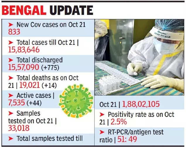 “Most testing centres were shut during the festival. It has started rising now and the results are showing. If more tests are conducted, the number of positives will rise. Most will be asymptomatic, though, since we now have a substantial vaccinated population and herd immunity,” said Institute of Post-Graduate Medical Education & Research (IPGMER) professor Diptendra Sarkar.