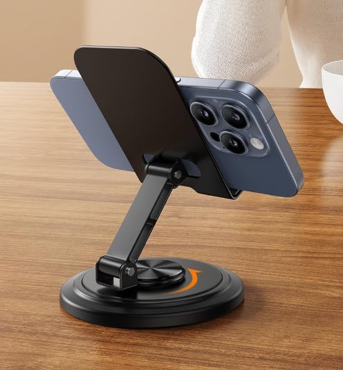From fan-favorite brand Lamicall, this phone stand stands out from the crowd because it can rotate 360 degrees around its base, making it suitable to use at a variety of angles and to share with other people. The top can also be angled for proper viewing, and this stand has an opening in the center so you can charge your phone while using it.