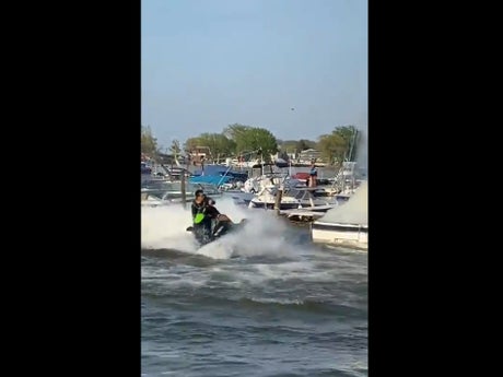 A video of an off-duty firefighter putting out a blaze with his jet ski has gone viral.
