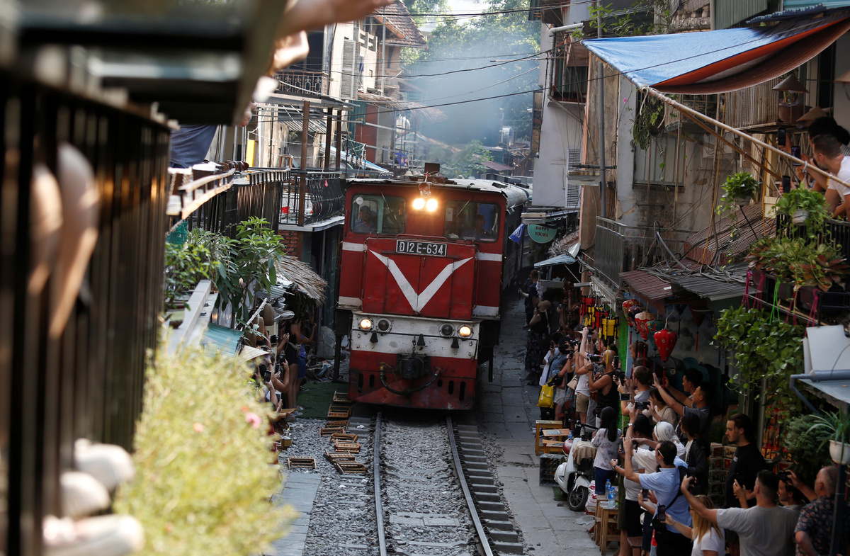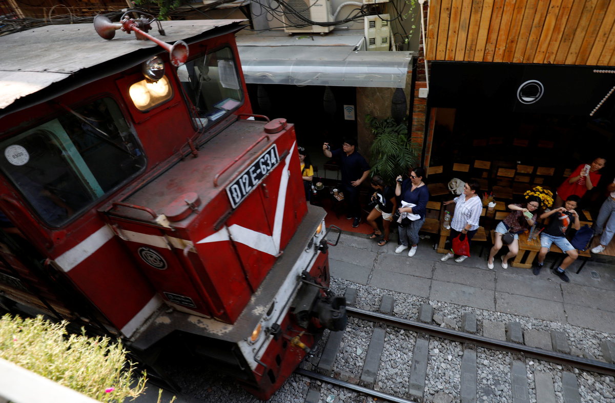 HANOI (Reuters) - It's the kind of shot every Instagram connoisseur yearns for: century-old railway tracks cutting through dusty backstreets, flanked by tourists drinking beer or iced tea mere inches from the slow-moving trains.