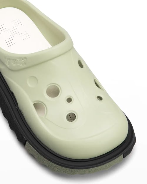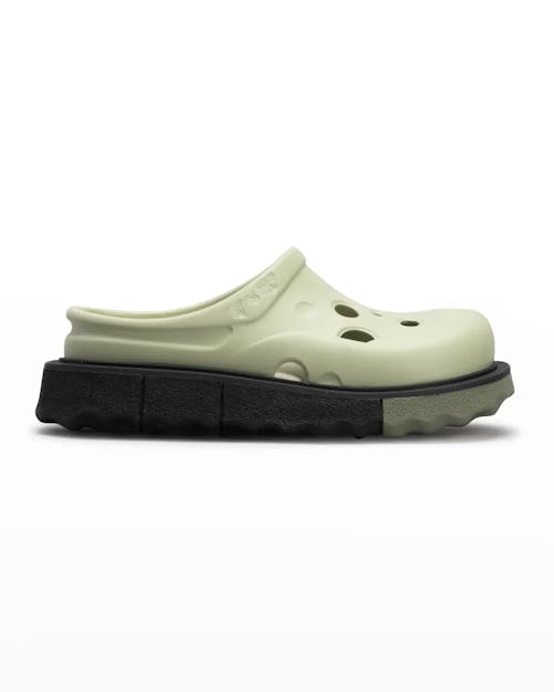 Of course, the popularity of the rubber slippers has inspired designer versions. Givenchy and Balenciaga already offer luxe iterations of the clog, and it seems Off-White is coming in hot with its own take. Maintaining the same clog silhouette, the label’s Spongesole Meteor Slipper is an out-of-this-world interpretation featuring “meteor holes” across its rubber upper, which comes in a moon-like pale green shade. Although it’s not clear if the material glows in the dark, it would certainly complete the theme of the space-inspired slipper.