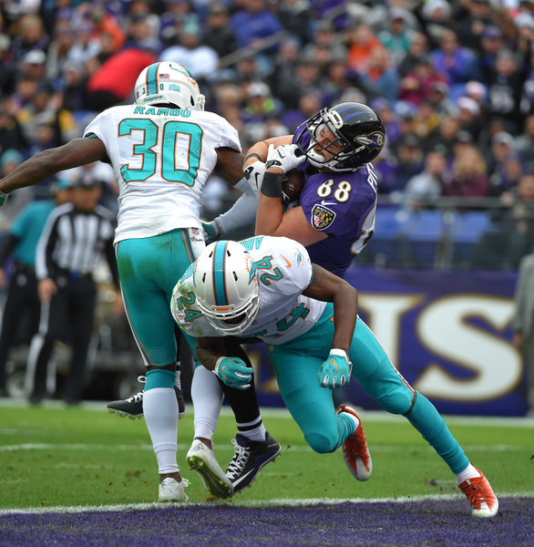 However, Flacco answered, hitting Breshad Perriman for a 53-yard touchdown pass. Terrance West then completed the rout by scoring on a 9-yard touchdown run against a Dolphins' defense that seemed disinterested by the end.