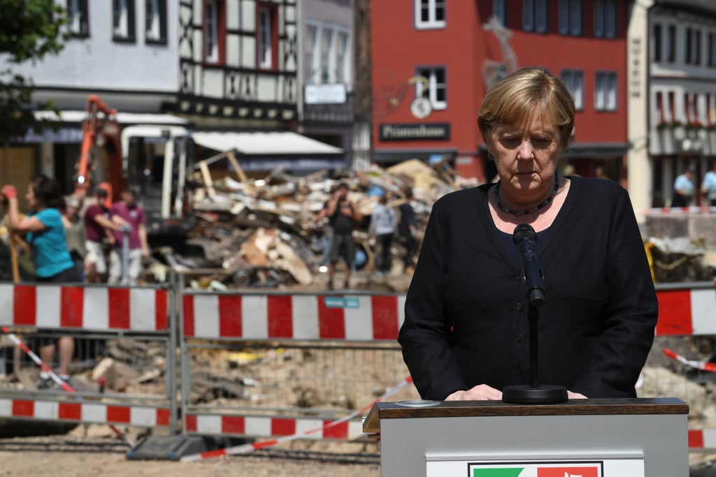 “The damage is horrifying,” Merkel told reporters during a visit to the riverside town of Bad Muenstereifel. “So many buildings are inhabitable. I met a lot of people here who’ve lost everything. It’s difficult to talk with words for a town hit as hard as this. The only consolation is that there is so much solidarity among the people here.”
