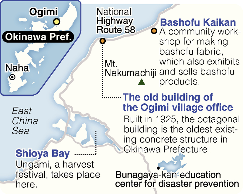 OGIMI, Okinawa -- Where does the softness of this textile come from? The fabric -- called bashofu -- is woven with threads taken from the itobasho plant and has a history of more than 400 years as a kimono material for summer in Okinawa Prefecture. It is produced in the Kijoka hamlet in Ogimi, a village in the northern part of Okinawa Island, facing the East China Sea.