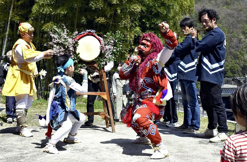 A local youth dressed as an ogre dances to the lively rhythm of a Japanese drum and flutes in the Hama-Kawachi district of Sado Island, Niigata Prefecture, on Saturday. Traditionally held every spring at Kawachi Shrine to pray for a bountiful harvest, the event was cancelled last year due to the pandemic. Well-rested ogres made a spirited return at this year's festival, which was streamed online for remote revelers unable to return to their hometown in person. Organizers said the festival had helped to lift the spirits of viewers, who left comments such as, "It's the highlight of spring."