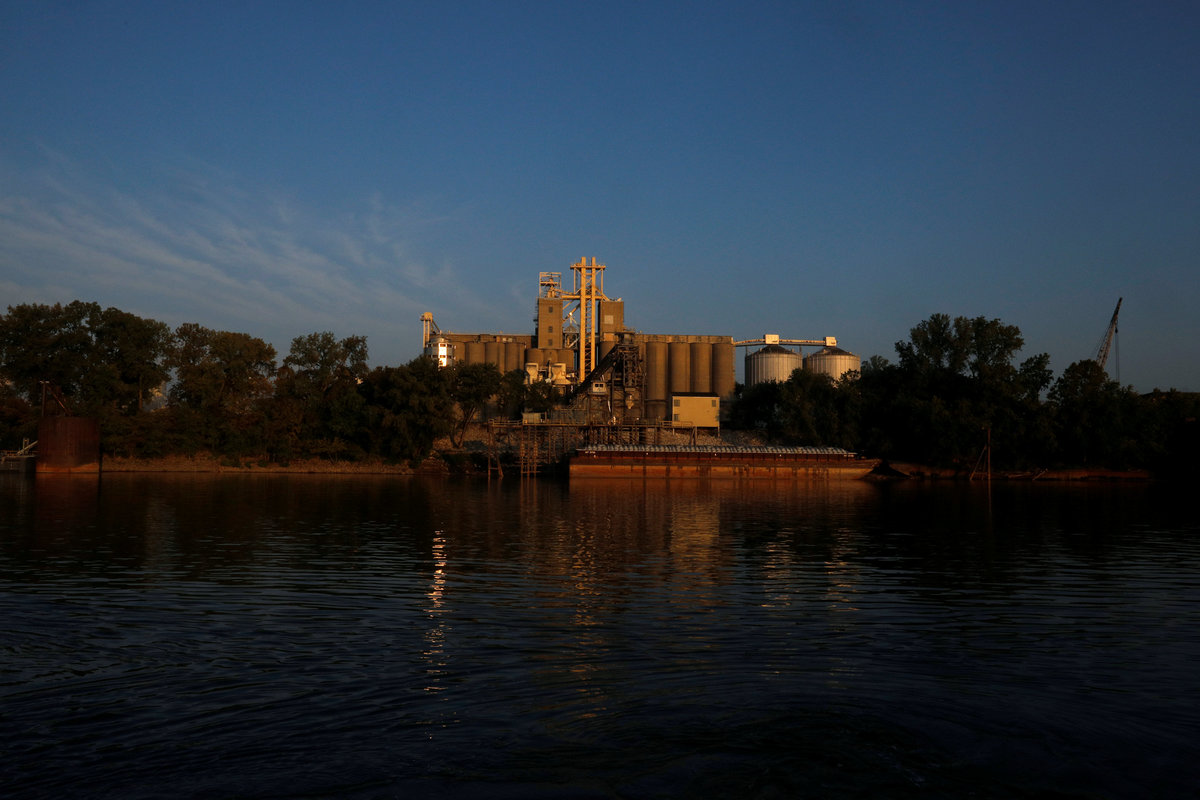 Campbell Transportation Company's towboat MK McNally passes ADM Grain Company on the Ohio River in Evansville, Indiana, U.S., September 17, 2017. REUTERS/Brian Snyder