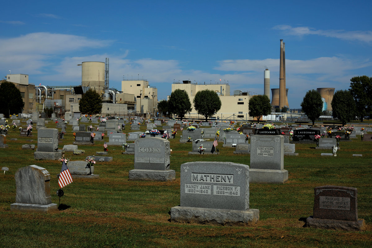 The Willow Island Baptist Church cemetery sits in front of Cytec Industries along the Ohio River in Belmont, West Virginia, U.S., September 24, 2017. REUTERS/Brian Snyder