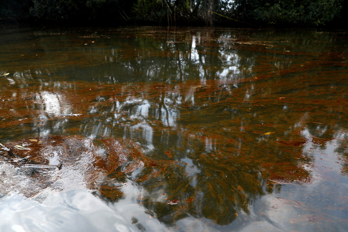 "The crayfish that I sell for a living, now they are all dead," said Afieyegha Seiyefa, showing her oil-covered hands after reaching into the water where just a few weeks ago she could fish for a living. "We cannot get anything."