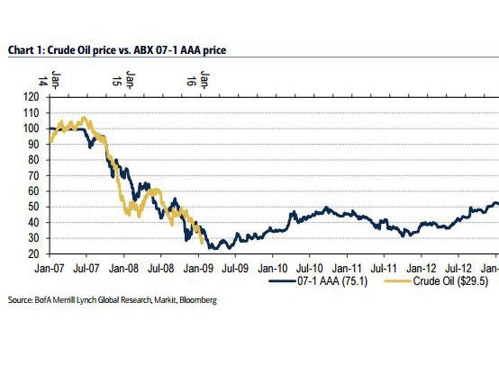 He charted the price of oil from 2014-2016 and noticed similarities to the subprime index in 2007-2009 on ABX, a credit derivatives index that references subprime mortgages and, ultimately, the US housing market.