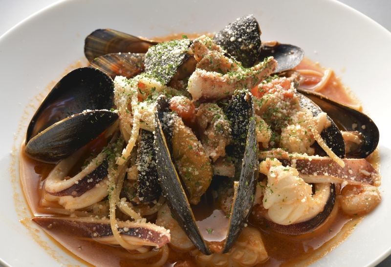 Pasta pescatore is a simple Italian seafood dish with a tomato sauce -- pescatore means fisherman in Italian. Chef Katsuo Omiya of Restaurant Omiya in Asakusa, Tokyo, dusts off one of his recipes for the traditional pasta dish, a hugely popular item when his establishment opened. The aroma of white wine, one of the dish's ingredients, complements the flavor and texture of the seafood.