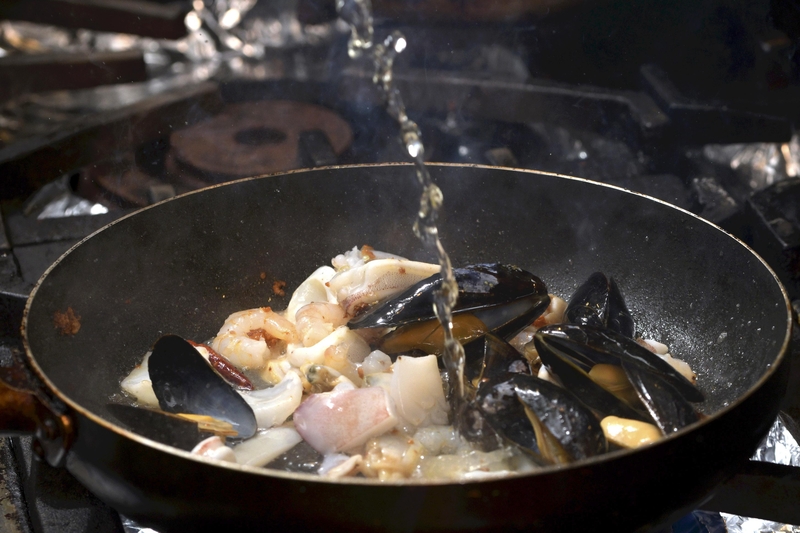 "Add the wine and tomatoes soon after putting in the seafood, to allow the seafood's flavor to mix in with the sauce," he said.