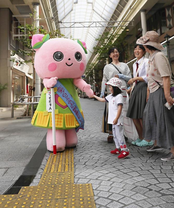 Sympathy and support have spread. A Chinese restaurant owner Kengo Tei, 53, in the city created a mascot in 2015 called Mamo-chan, based on the prefecture's specialty of peaches. He created the mascot to help children become familiar with braille blocks and launched a campaign to encourage people not to put things on top of the blocks.
