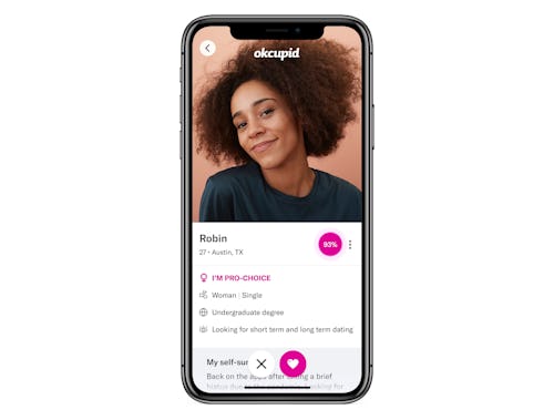 In light of Texas’ Senate Bill 8, which made abortion after six weeks illegal, OkCupid is introducing a feature to show off users’ pro-choice values. Users now have the option to display a bright, all-caps badge stating “I’m Pro-Choice” at the top of their profiles, as well as a filter to search only for other profiles that identify as pro-choice.