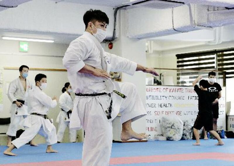On a late August day in Naha, about 15 members of the Ryuho-kai club, ranging from elementary school children to adults, were going through a hard workout in their dojo training hall of the Ryuei-ryu style of karate. Alongside them, the 31-year-old Kiyuna was intensely focused as he repeatedly thrust out his hands in silence.