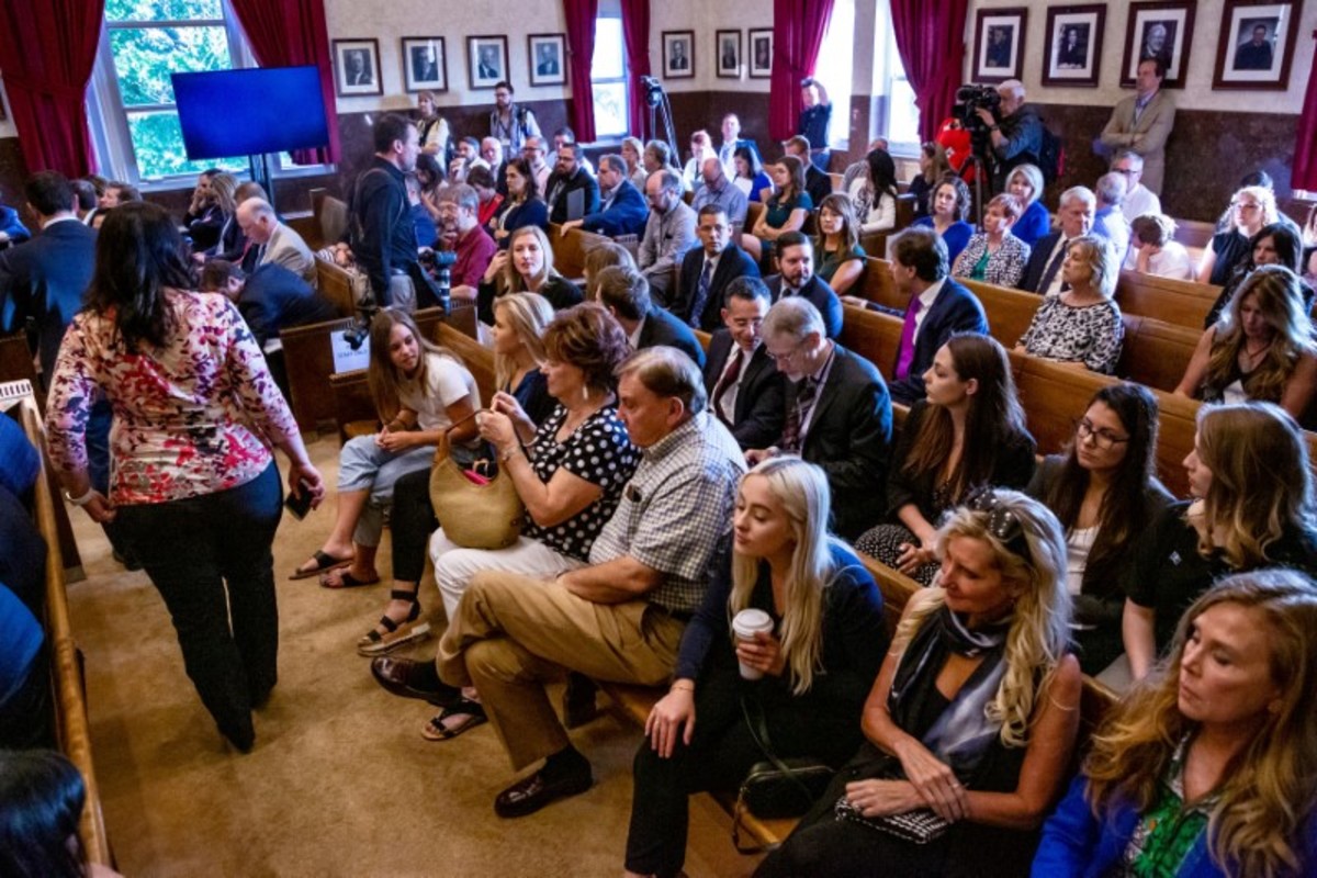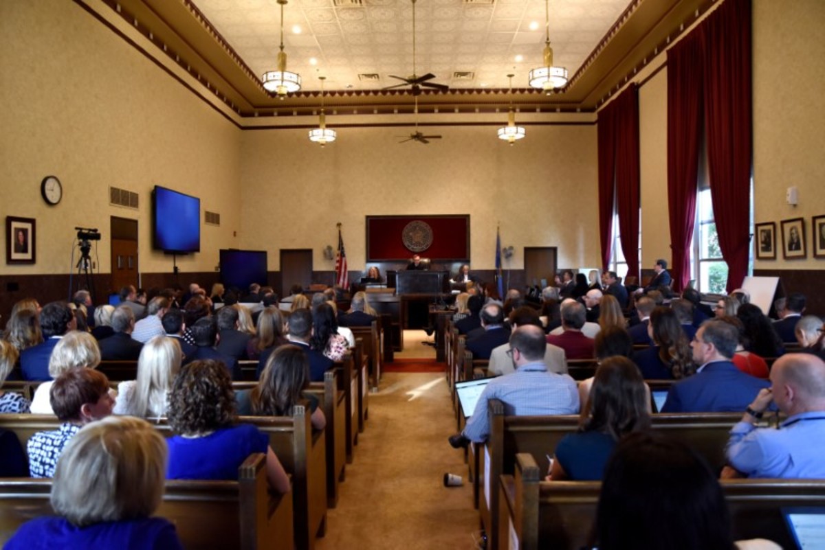 The courtroom fills up before the start of the Oklahoma v. Johnson & Johnson opioid trial at the Cleveland County Courthouse in Norman, Oklahoma, U.S. May 28, 2019. Chris Landsberger/Pool via REUTERS