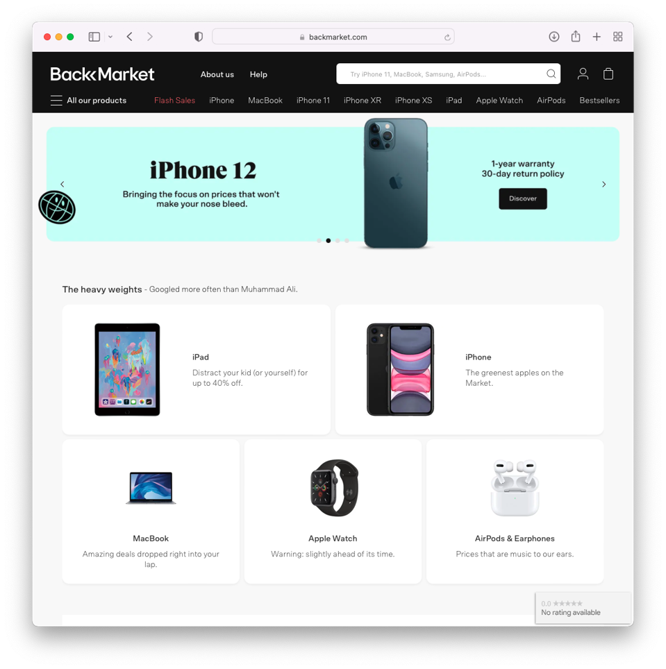 Back Market checks all devices and grades them, and offers products from multiple partners’ certified refurbished programs, such as GoPro and Sennheiser. In 2019 Apple also made its certified refurbished devices available via Back Market. More than 800 partners resell products on the site, including PCS Wireless and WeFix, and the French company LaptopService. Every device it sells, the company says, is guaranteed to be 100% functional regardless of its grade.