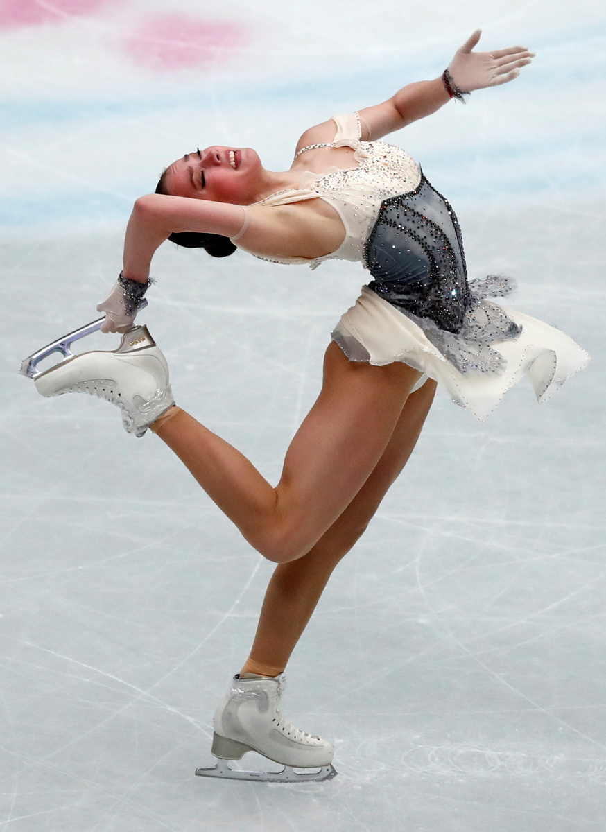 Elizabet Tursynbaeva of Kazakhstan was third with 75.96 points after a lyrical and fluid routine. The 19-year-old became the first Kazakh ladies skater to ever make the podium when she took bronze at the Four Continents meet in February.