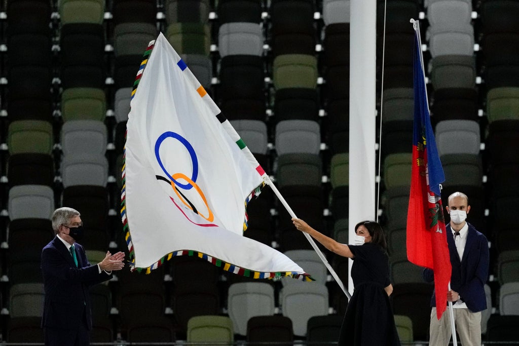 The flag “is the symbol that now, really, the Paris Games are coming and it will go very fast,” Hidalgo told reporters, saying they will be “very positive for our country.”