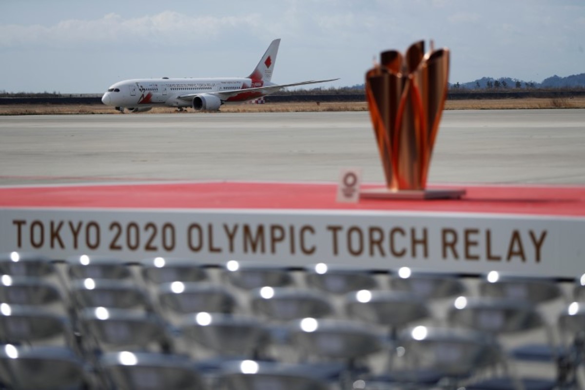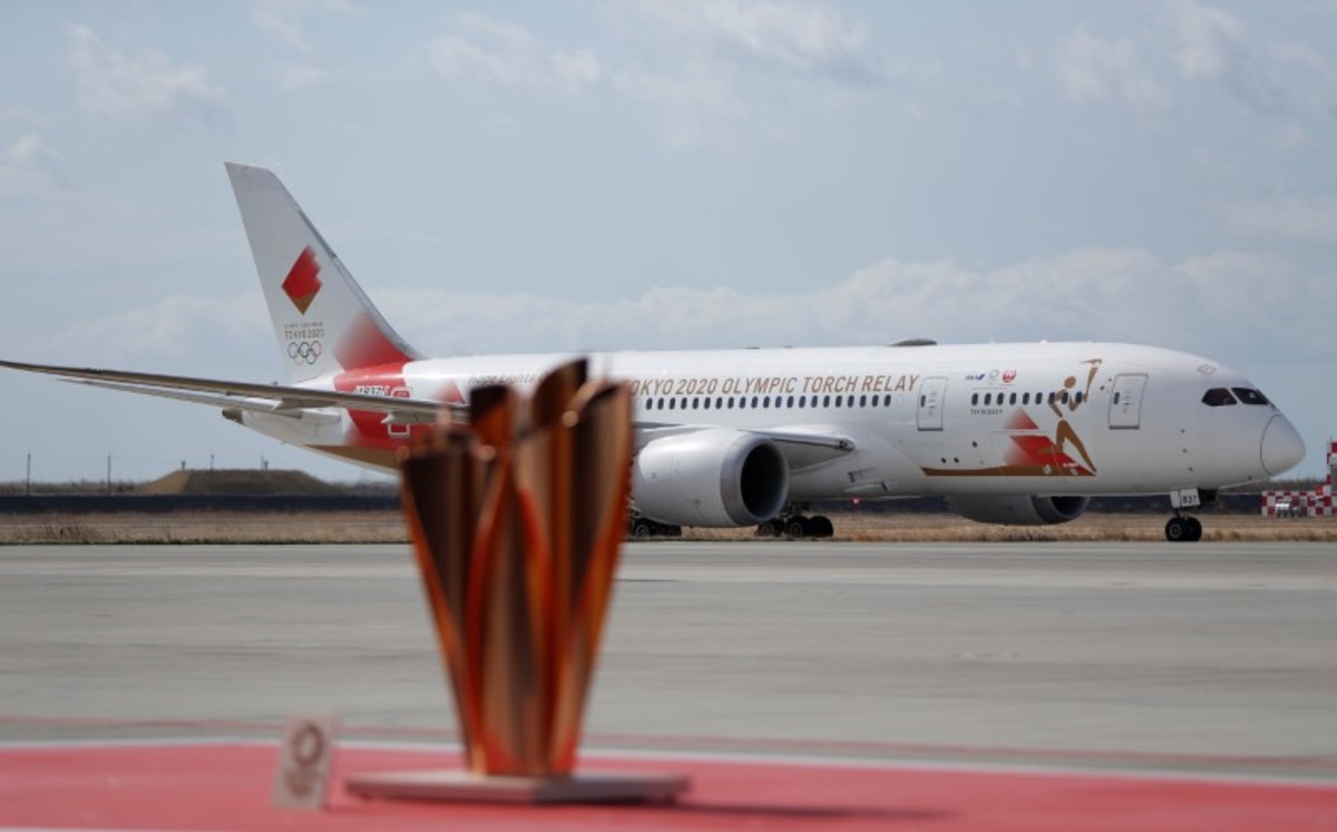 The 'Tokyo 2020 Go' aircraft transporting the Olympic Flame from Greece to Japan, arrives at Japan Air Self-Defense Force Matsushima Base in Higashi-Matsuhsima, Miyagi prefecture, northern Japan March 20, 2020. REUTERS/Issei KatoThe 'Tokyo 2020 Go' aircraft transporting the Olympic Flame from Greece to Japan, arrives at Japan Air Self-Defense Force Matsushima Base in Higashi-Matsuhsima, Miyagi prefecture, northern Japan March 20, 2020. REUTERS/Issei KatoThe Olympic cauldron awaits the Olympic Flame during an Olympic Flame Arrival Ceremony at Japan Air Self-Defense Force Matsushima Base in Higashi-Matsuhsima, Miyagi prefecture, northern Japan March 20, 2020. REUTERS/Issei Kato