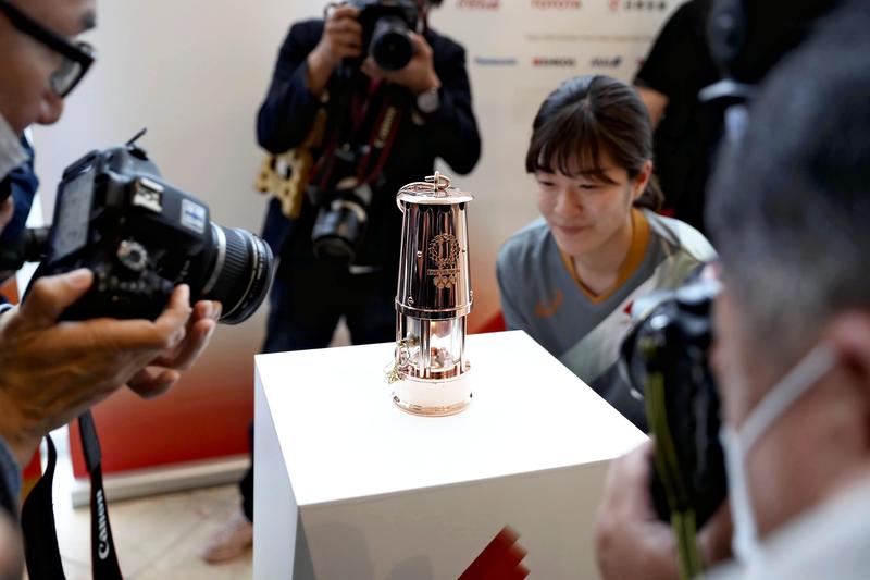 FUKUSHIMA -- The Olympic flame, which arrived in Japan before the Tokyo Games were postponed, was opened for public viewing Thursday at the J-Village national soccer training center in Fukushima Prefecture.