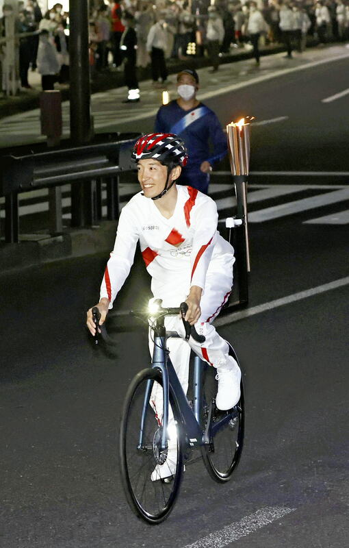 Nariyuki Masuda, who has been selected as a member of the men's national cycling road team, ran his leg of the Tokyo Games torch relay on the fifth day in Utsunomiya on Monday.
