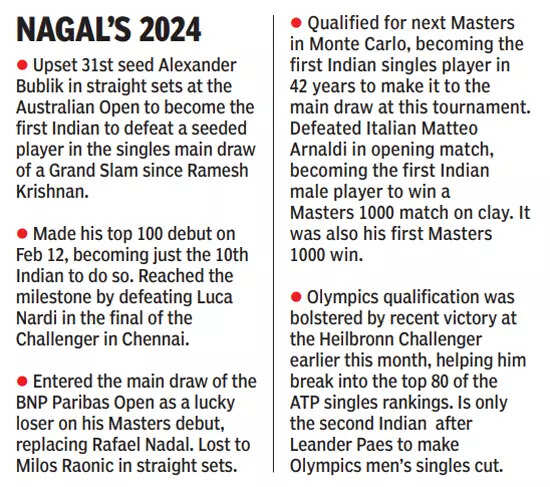 BENGALURU: Sumit Nagal took a midseason break in April-May because of an injured right shoulder. His serve and forehand were hampered. Nagal hadn’t planned to take a break then. Unfortunately the body doesn’t send out preinjury notifications.