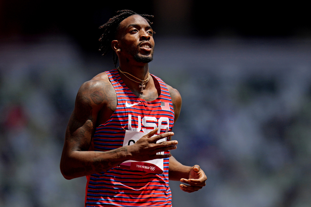 Michael Cherry posted the quickest time to advance to the semi-finals of the men's 400 metres on Sunday at a scorching Olympic Stadium as the United States look to reestablish their dominance in an event they last won in Beijing.