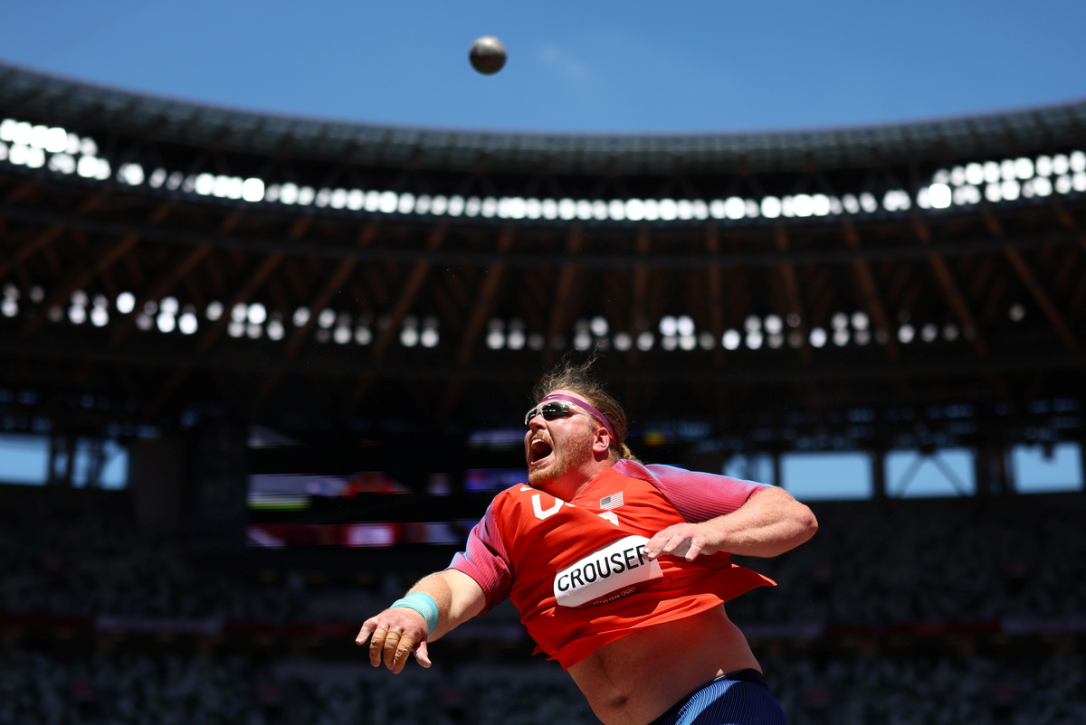 Crouser was at his imperious best as he retained his title in one of the morning session's three gold-medal events at the Olympic stadium, breaking his own record three times in the final -- only the third person to ever achieve the feat.
