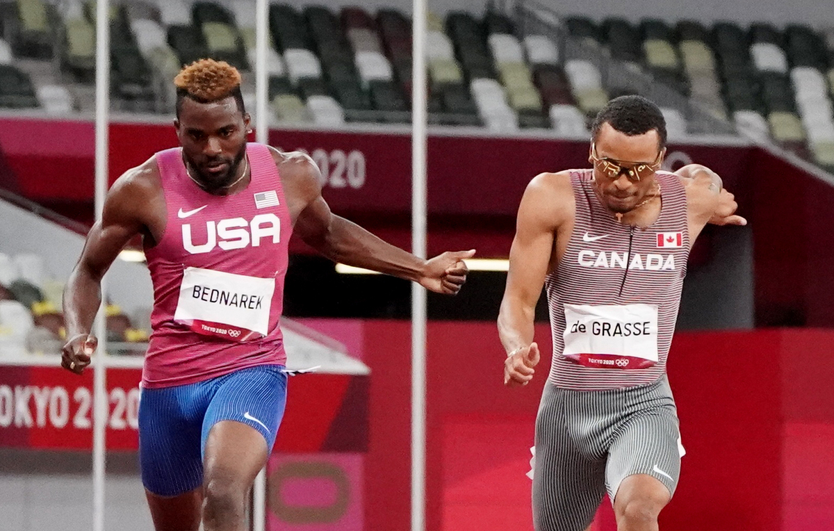Bednarek, 22, had arrived in Tokyo in red-hot form after his 19.78 personal best at the U.S. Olympic trials and running in the lane next to De Grasse helped him through.