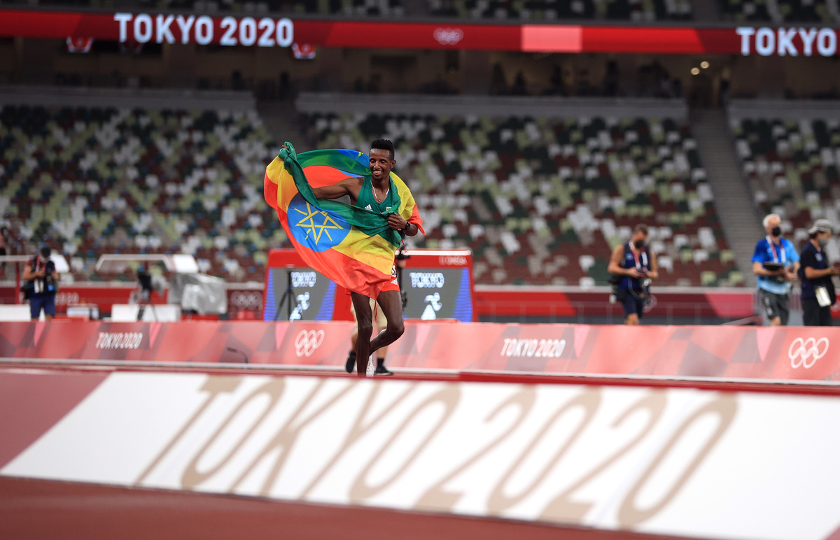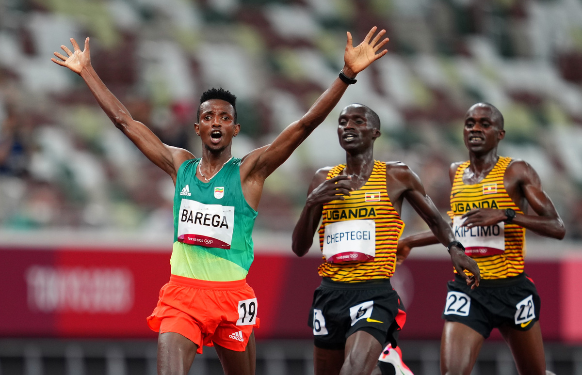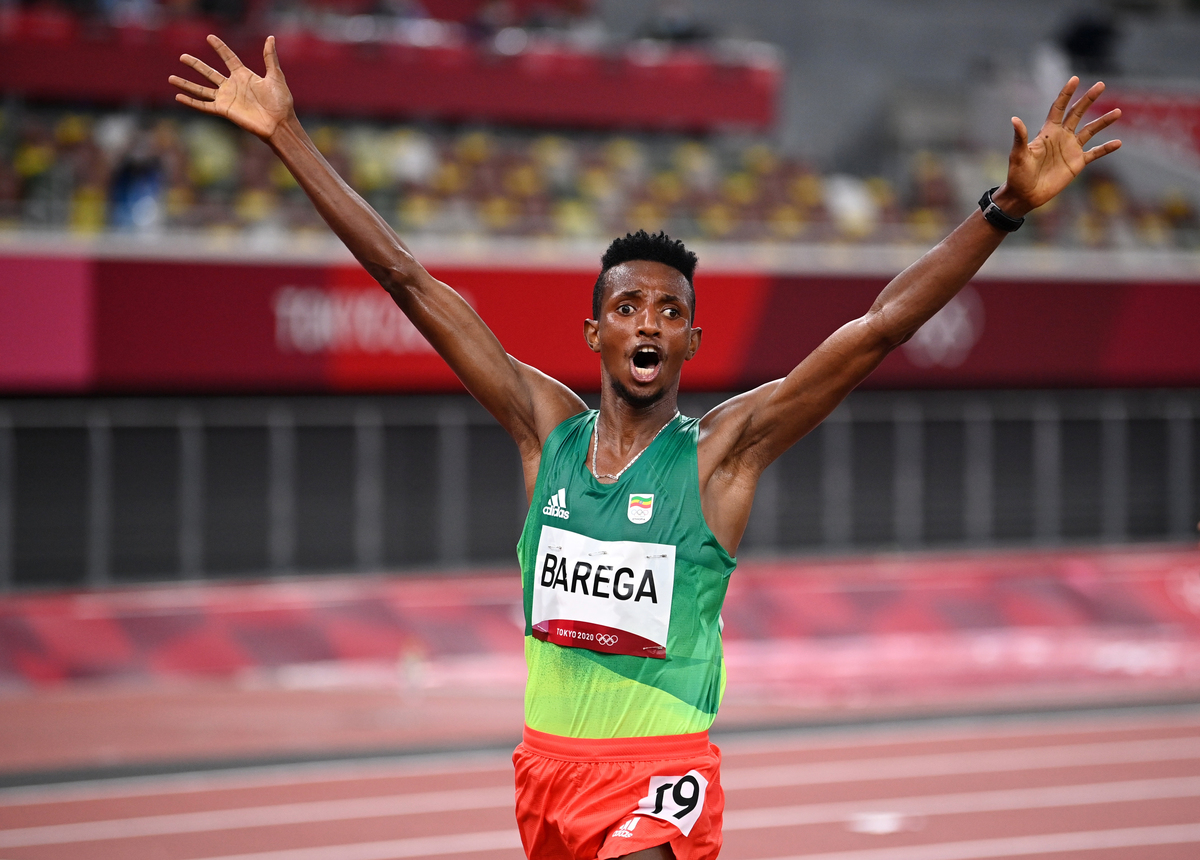 Barega, the 2019 5,000m world championship silver medallist who set the second fastest 10,000 metres time of the year in June, was applauded by the Ethiopian delegation as he smiled broadly on a victory lap with his country's flag draped around his shoulders.