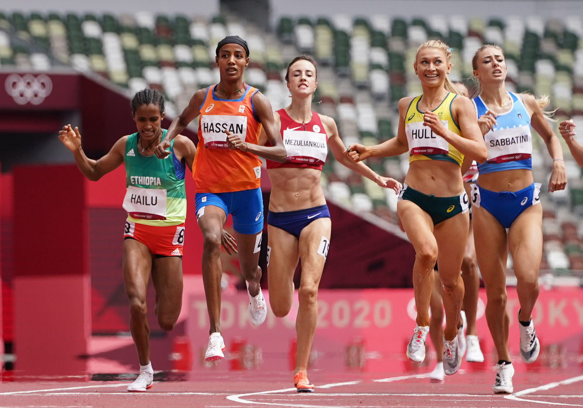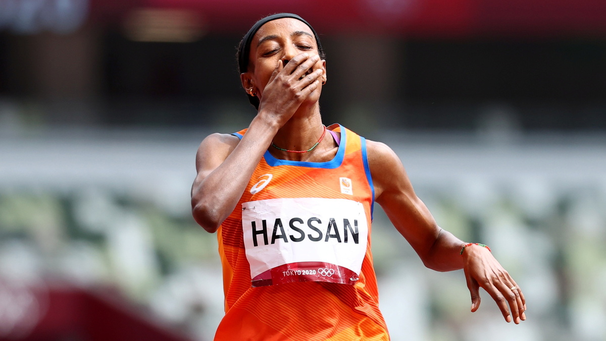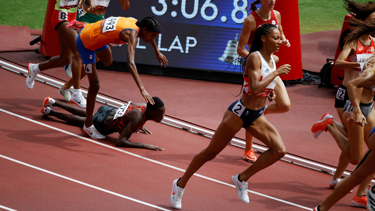 Dutchwoman Sifan Hassan's dream of an unprecedented treble looked under threat on Monday as she tumbled and fell in her 1,500 metres heat but she recovered brilliantly and pushed hard to win her race and advance to the semi-finals.