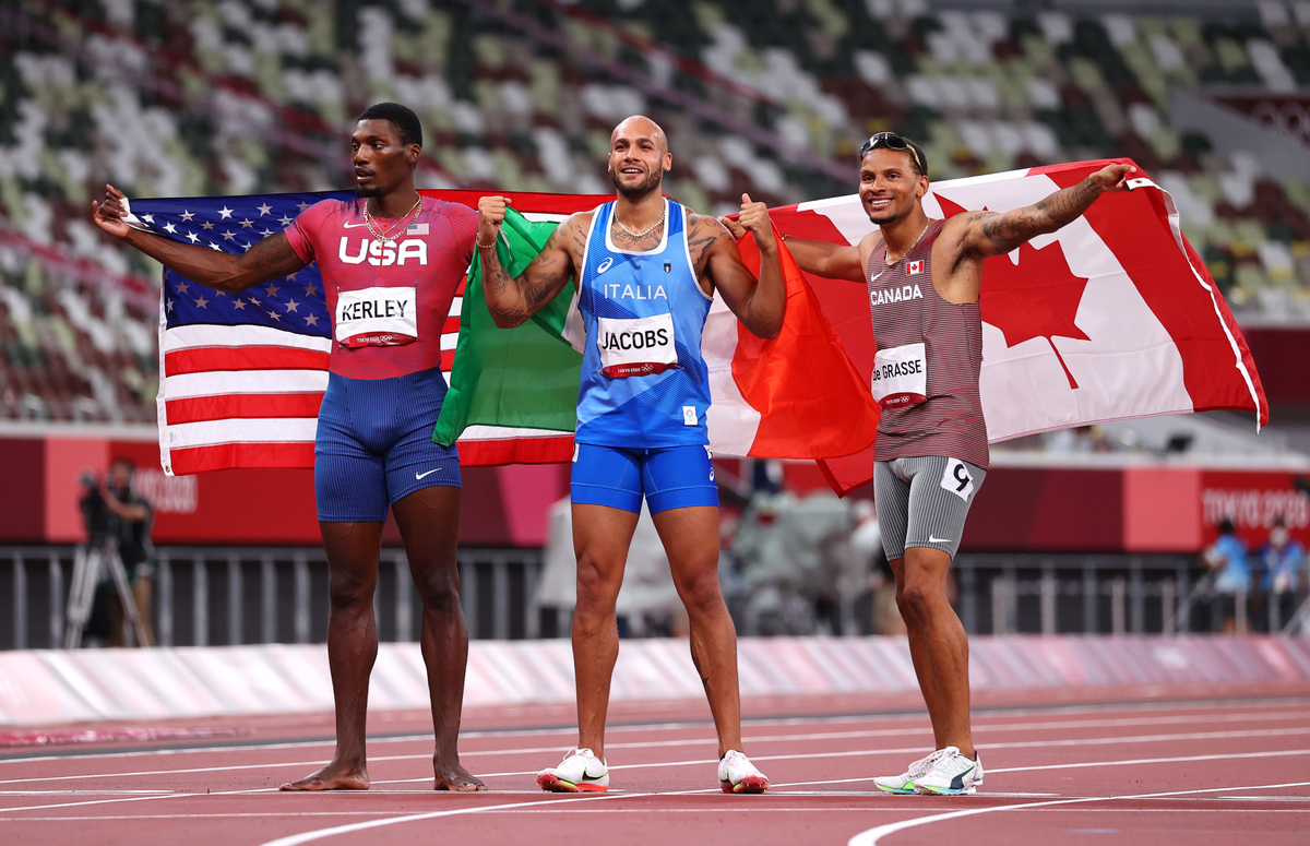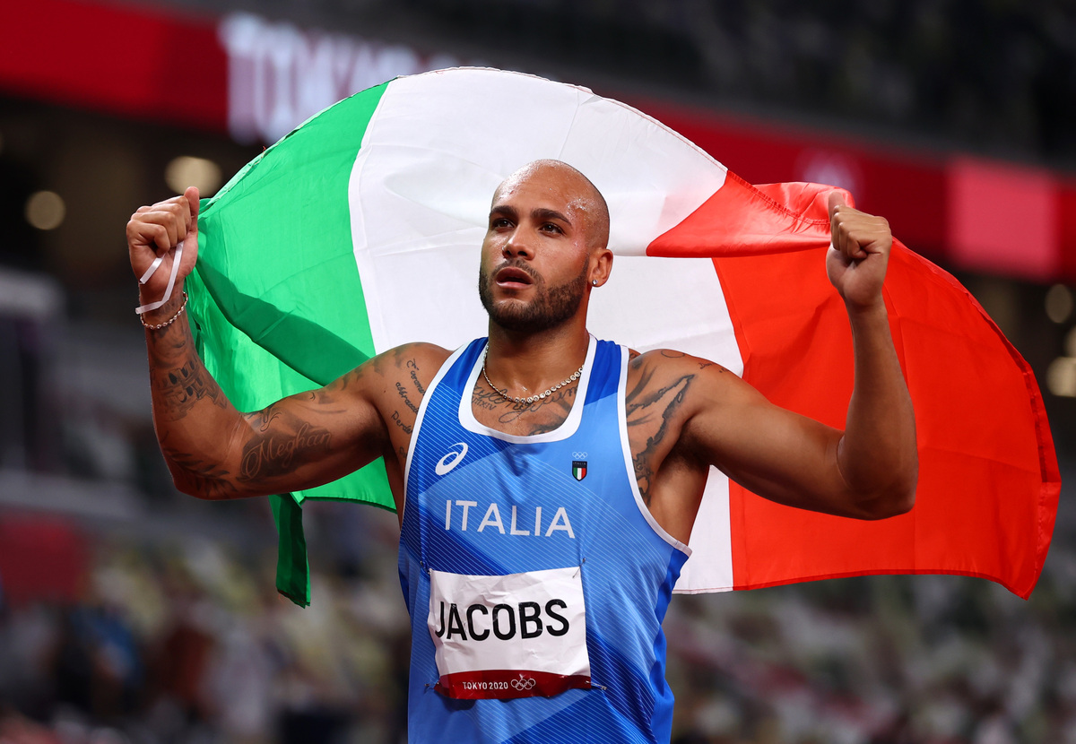 Lamont Marcell Jacobs of Italy won the men's 100 metres gold at the Tokyo Olympics on Sunday.
