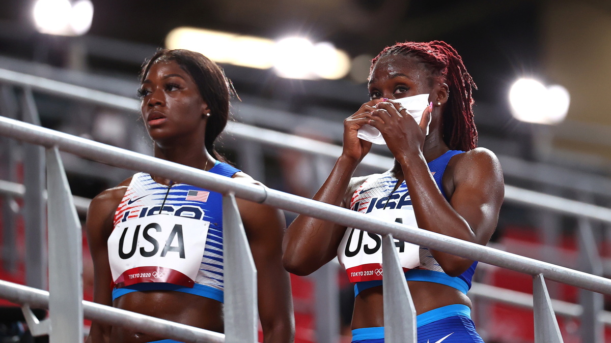The American team, comprising Elija Godwin, Lynna Irby, Taylor Manson and Bryce Deadmon, finished fastest in the first heat but were later disqualified for exchanging the baton outside the changeover zone.