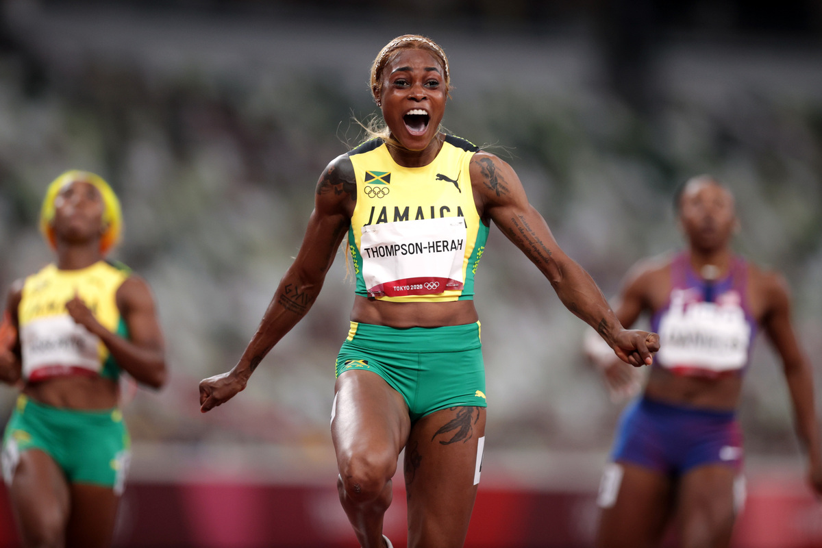 Defending champion Elaine Thompson-Herah led home a Jamaican clean sweep in the Olympic women's 100 metres final on Saturday, posting an amazing 10.61 seconds to become the second-fastest woman in history.