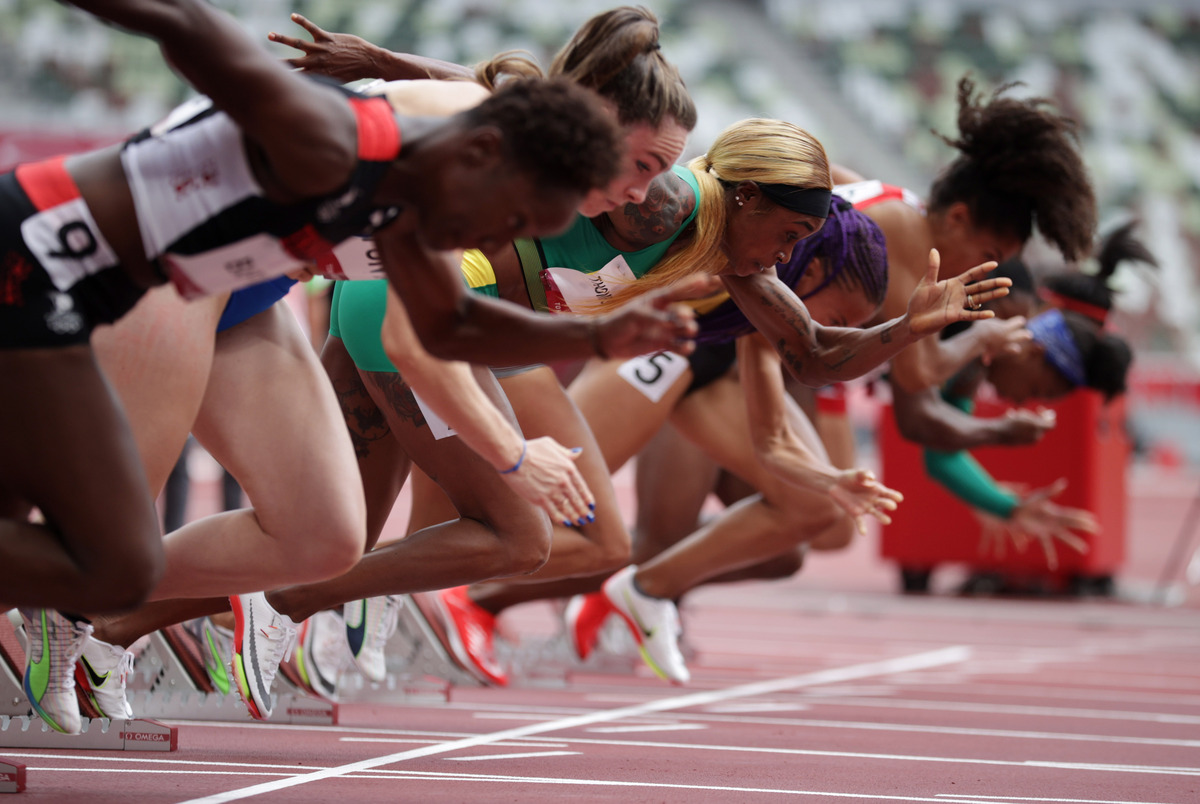 The defending Olympic champion Jamaican Elaine Thompson-Herah ran a scorching 10.82 to advance and she almost slowed towards the finish line. She was all smiles and thumbs up after a performance that made a clear statement of intent that she was not yet ready to relinquish her title.
