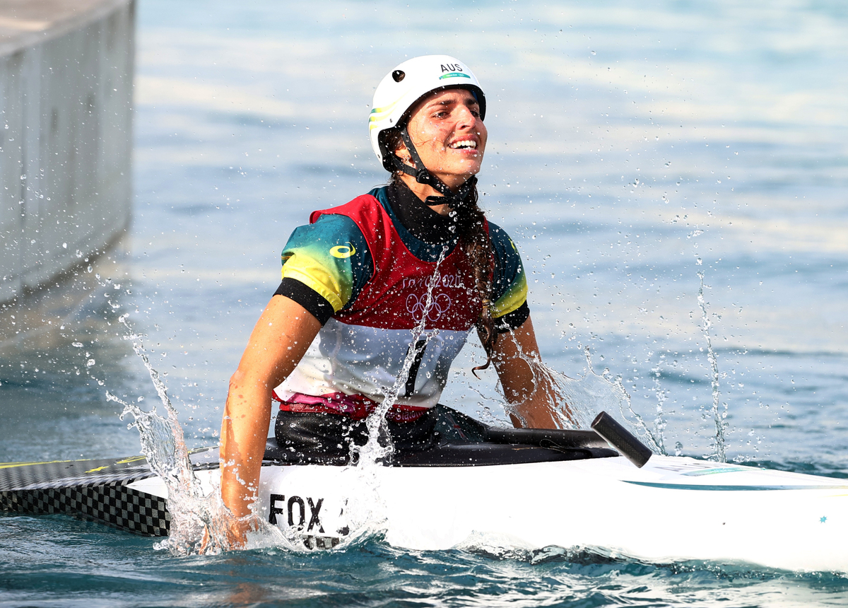 After pulling away from the start line at the artificial white water course, Fox's run was flawless as she shot through the downstream gates and swung around upstream gate poles before digging her paddle into the water to power across the finish line.