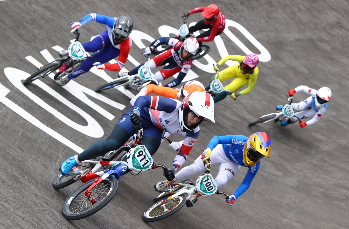 Bethany Shriever of Britain won the Olympic women's BMX race gold medal on Friday at the Ariake Urban Sports Park.