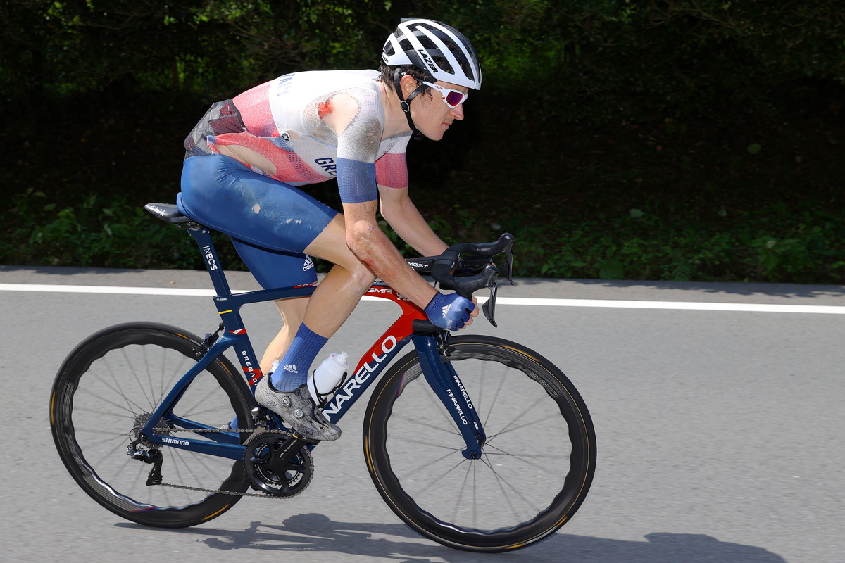 The Welsh former Tour de France champion was tipped as a medal prospect on a 234-km course packed with brutal climbs, but he hit the deck early on in a crash also involving fellow team member Tao Geoghegan Hart.