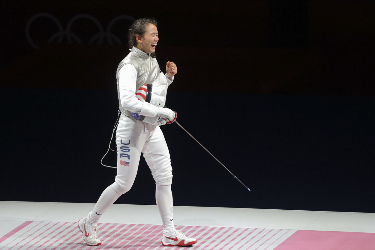 Lee Kiefer of the United States won gold in the individual women's foil fencing competition on Sunday.
