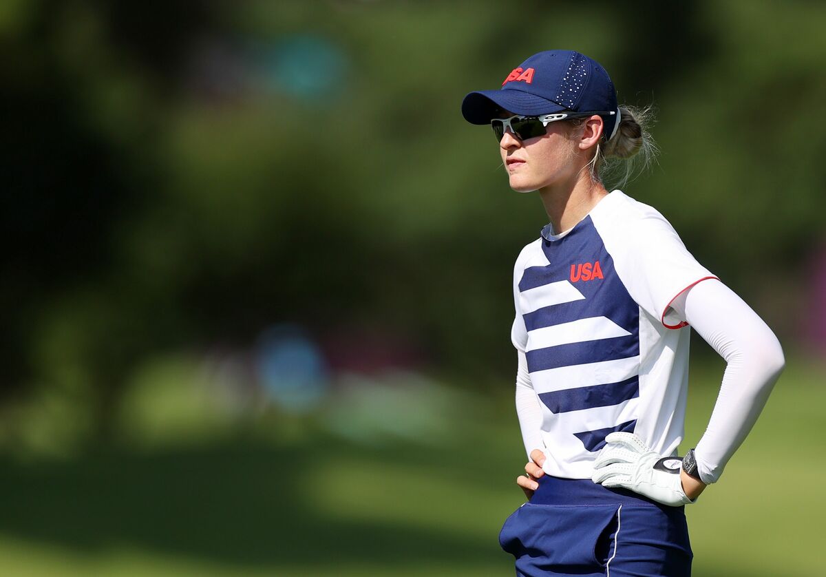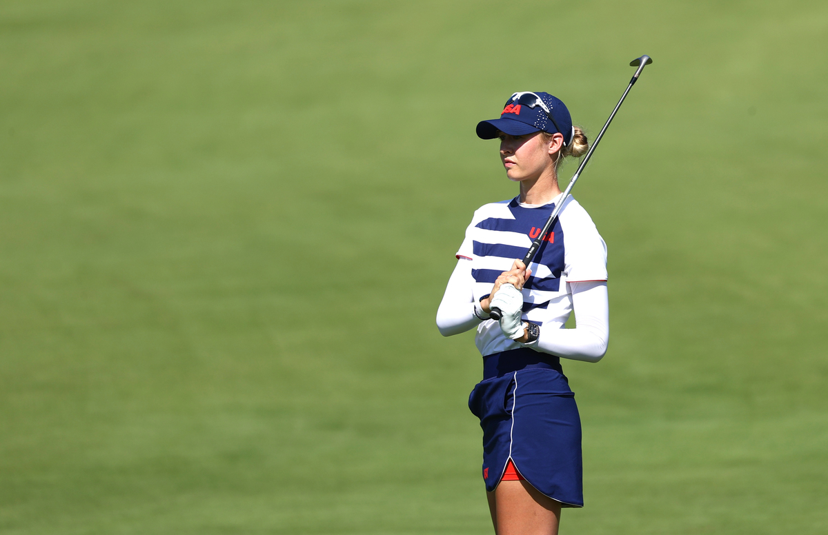 Nelly Korda ignited the Olympic golf with a second round 62 in sapping heat on Thursday to put the United States top of the leaderboard by four strokes as a storm forecast threatened to cut the tournament short.