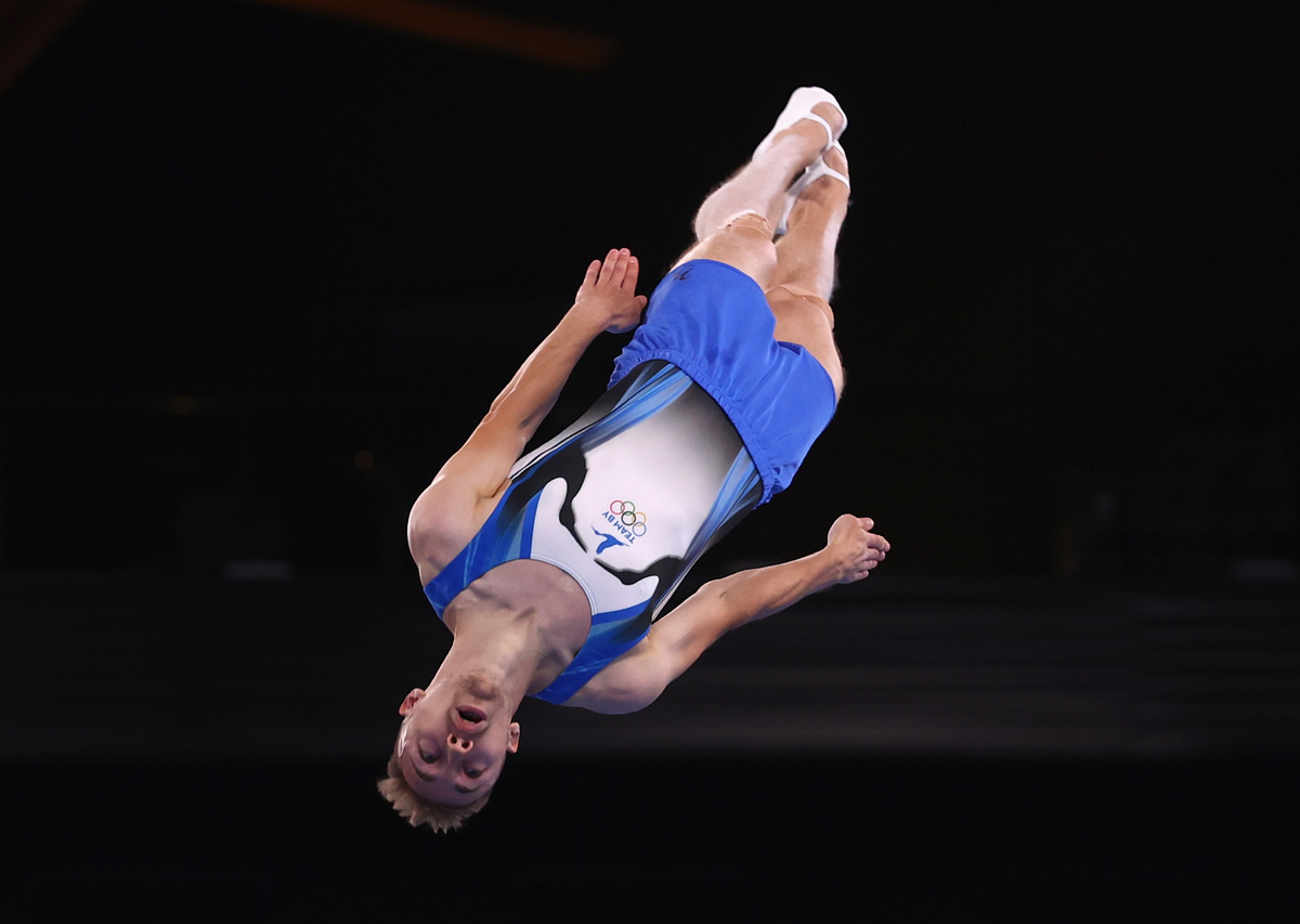 Defending Olympic champion Belarusian Uladzislau Hancharou was in second place going into the men's trampoline finals on Saturday, with compatriot Ivan Litvinovich leading qualifications.