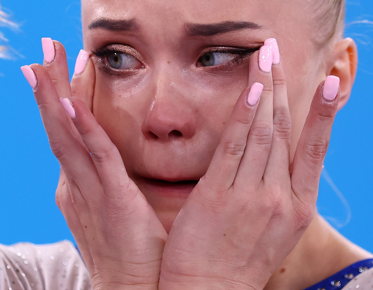 Tokyo 2020 Olympics - Gymnastics - Artistic - Women's Team - Final - Ariake Gymnastics Centre, Tokyo, Japan - July 27, 2021. Angelina Melnikova of the Russian Olympic Committee reacts after winning the gold medal REUTERS/Mike Blake