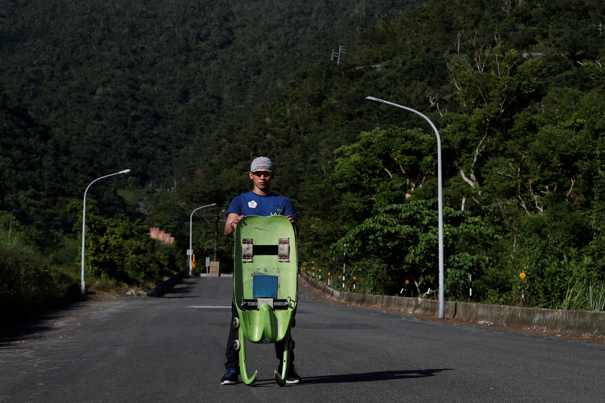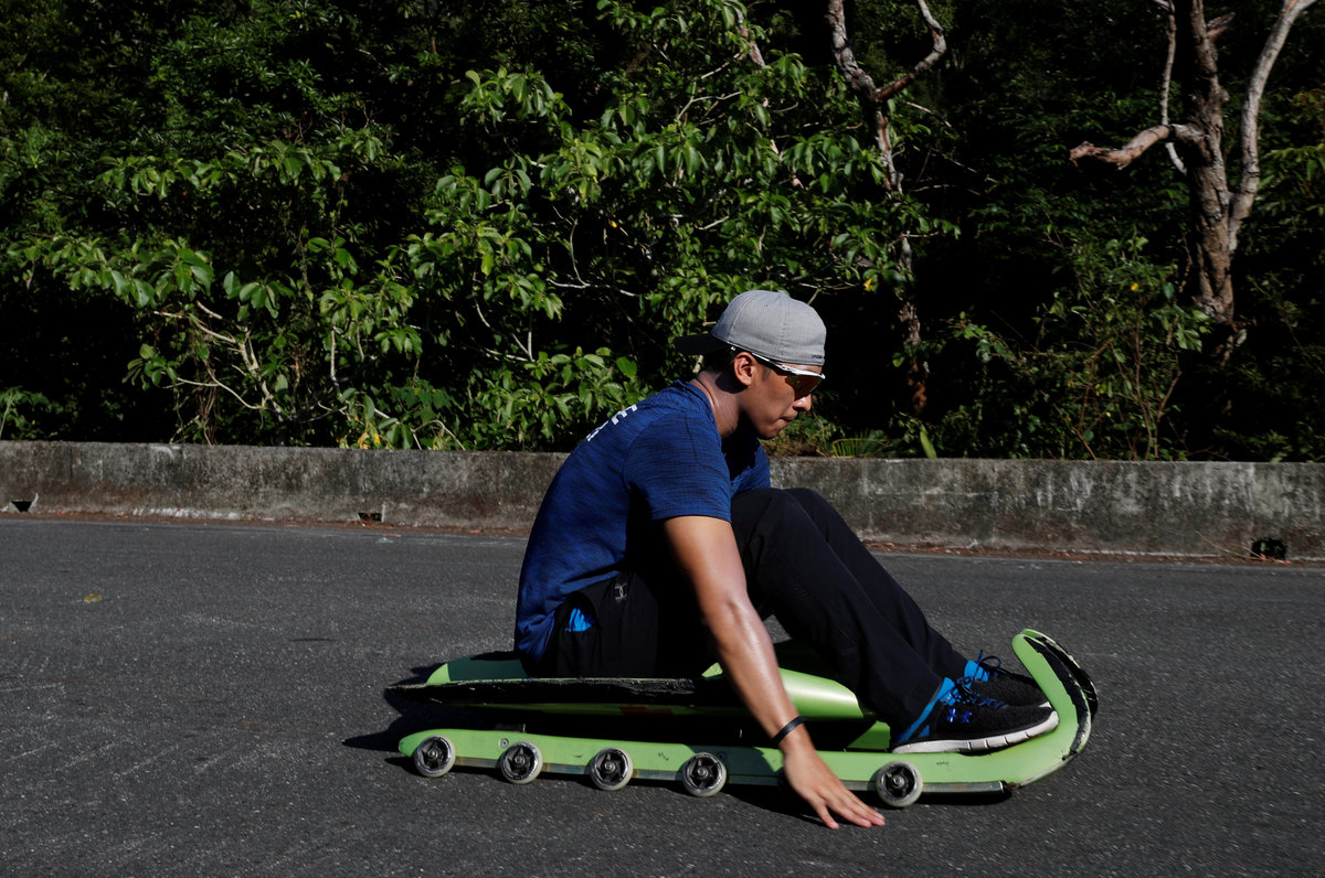 TAIPEI (Reuters) - When Lien Te-an sets off on his luge for practice runs there is no biting cold or sound of blades scraping the ice, only a swoosh before he disappears down a steep mountain road into the shimmering heat of eastern Taiwan's Yilan County.