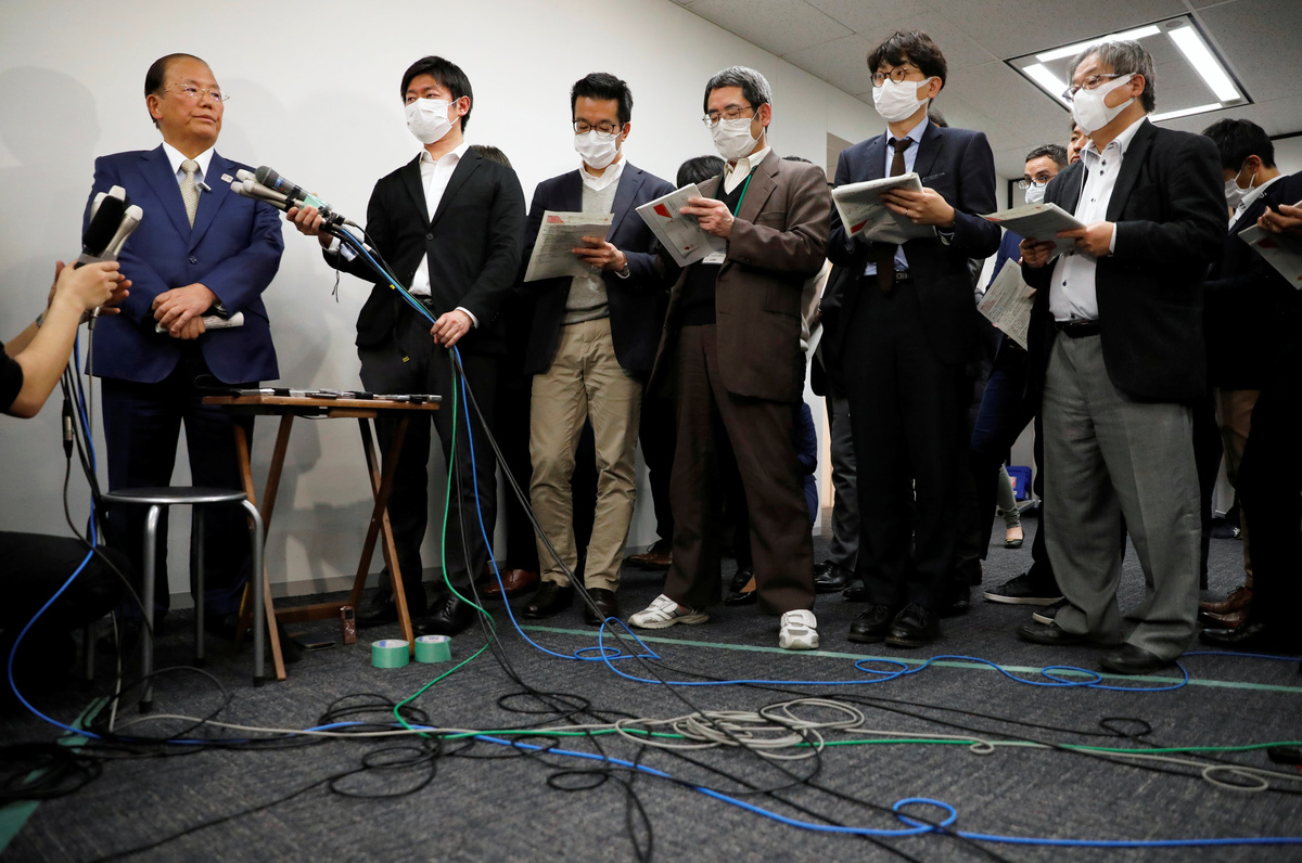 Toshiro Muto, Tokyo 2020 Organizing Committee CEO, addresses the Olympic torch relay during a news conference, as the spread of the coronavirus disease (COVID-19) continues, in Tokyo, Japan March 17, 2020. REUTERS/Issei Kato